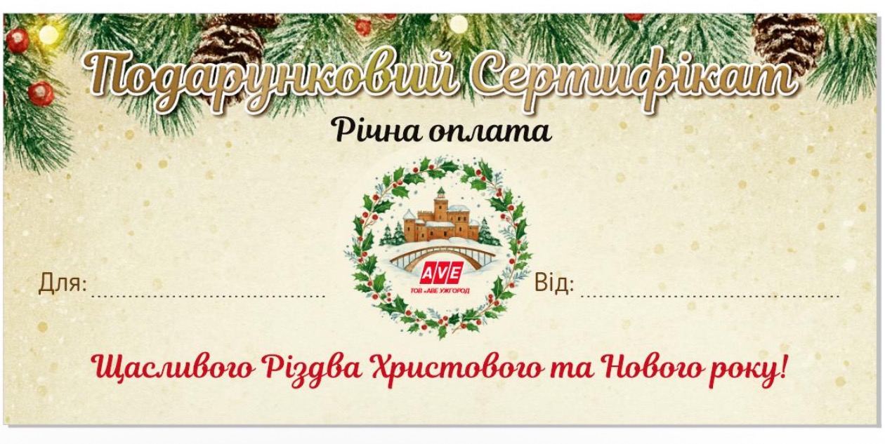 Подарунковий сертифікат «Річна оплата» від ТОВ «АВЕ УЖГОРОД»
