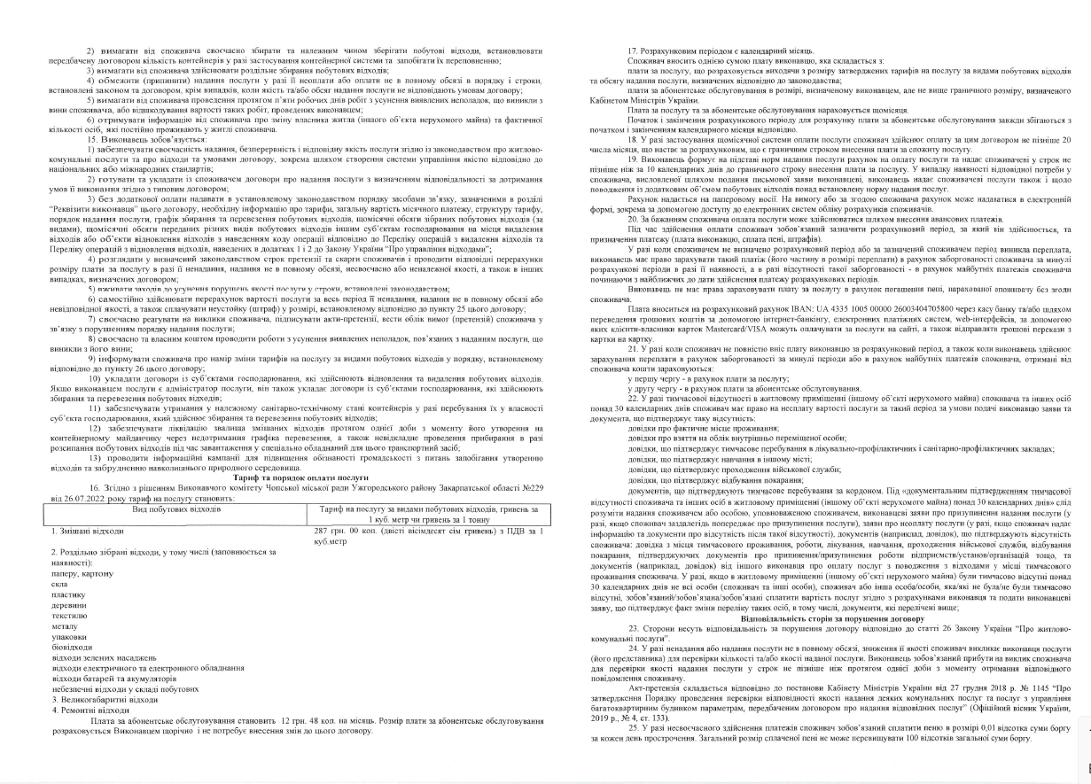 Публікація в новій редакції індивідуального договору про надання послуги з управління побутовими відходами на території Чопської міської територіальної громади