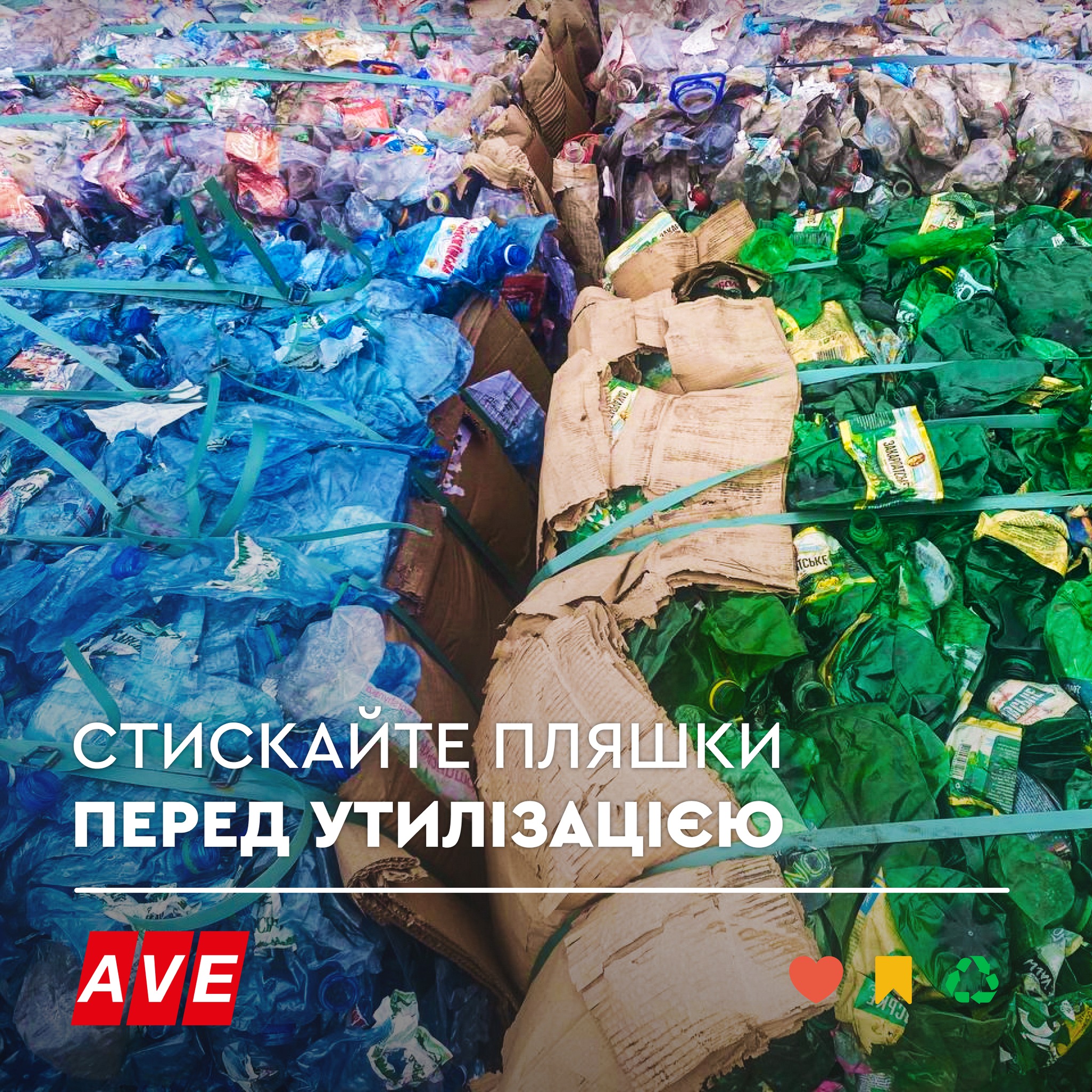 Наше прохання досить просте: будь ласка, стискайте пляшки перед утилізацією. Спресований пластик займає менше місця, а отже, ми зможемо охопити й завантажити в наше авто більшу кількість вторинної сировини.
