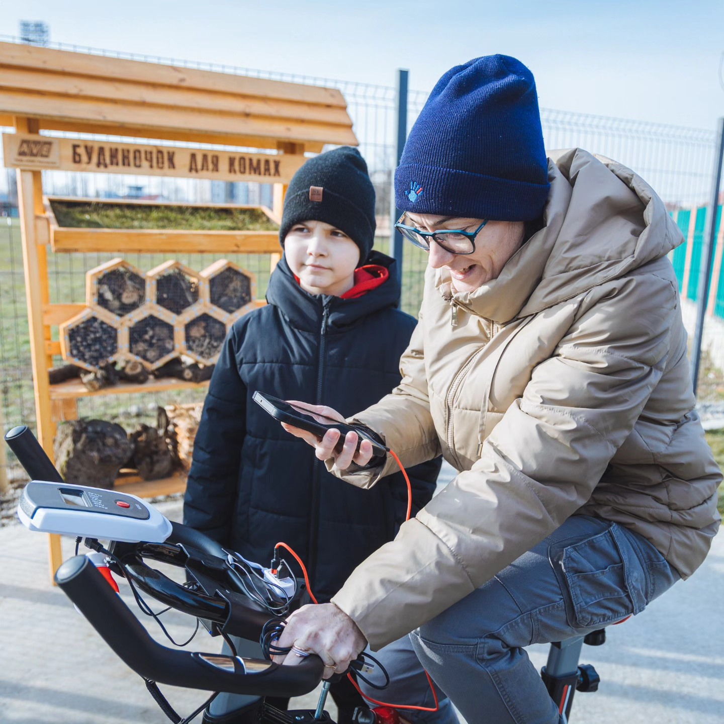 встановлено ековелосипед, за допомогою якого можна підзарядити пристрої, крутячи педалі