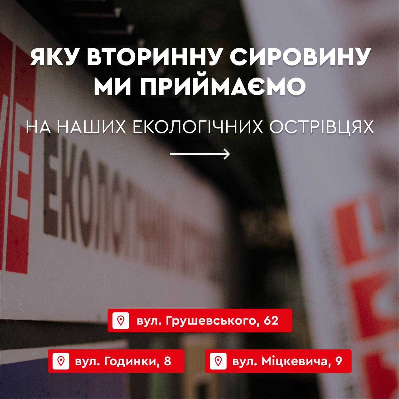 Тут можна здати як вторсировину (папір, пластик, картон, скло, алюмінієві банки, метал, батарейки) так і великогабаритні відходи, будівельне та ремонтне сміття.