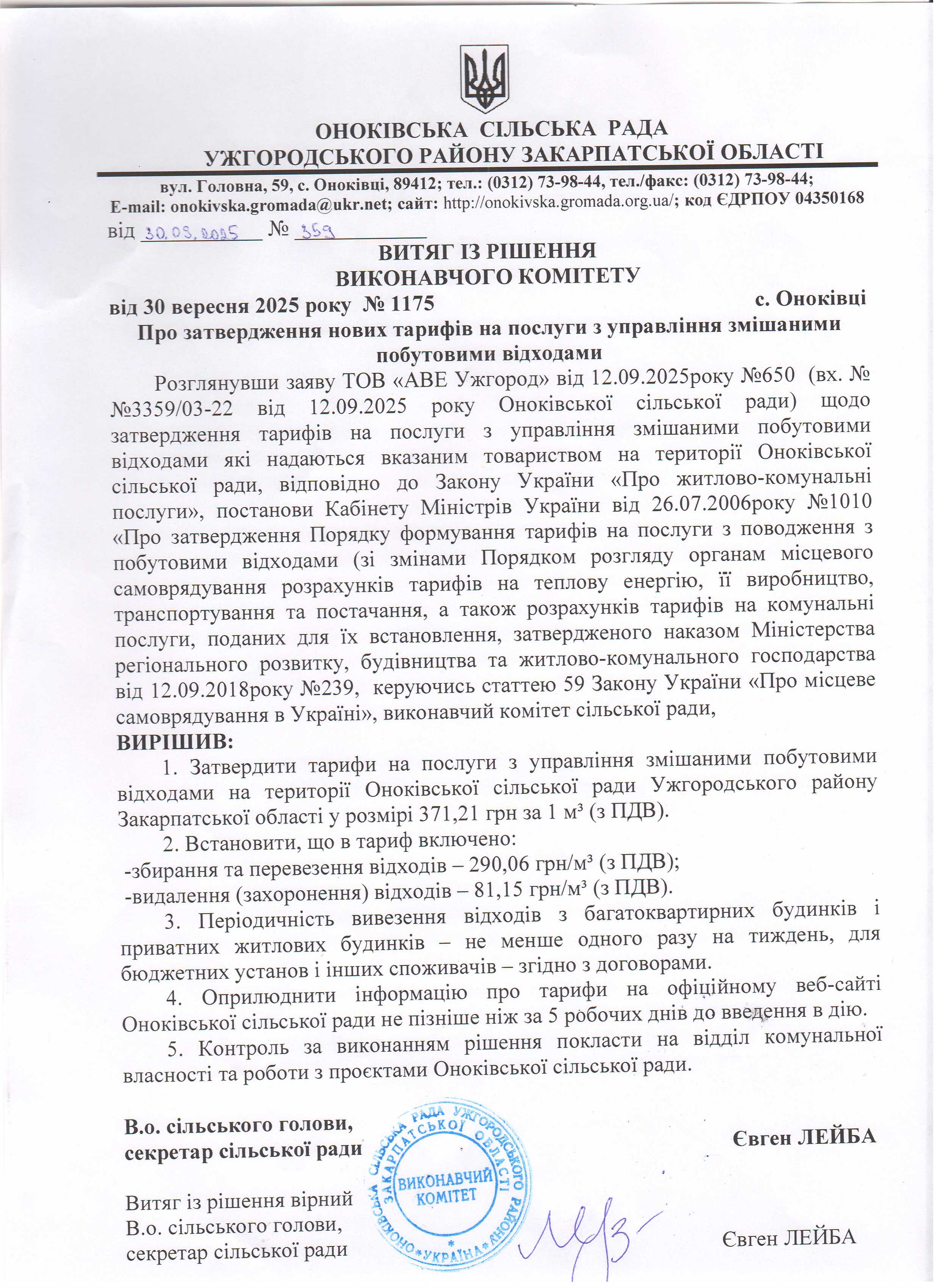 Для підписання договору з управління побутовими відходами потрібні наступні документи: